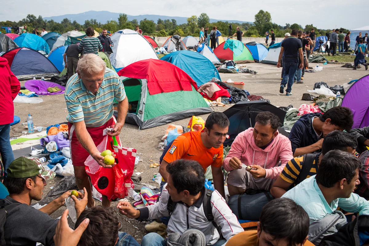 « S’il vous plait, prenez-les, elles sont très, très bonnes », dit un Croate, en offrant des pommes à des réfugiés afghans qui se trouvent à la frontière depuis plusieurs jours.