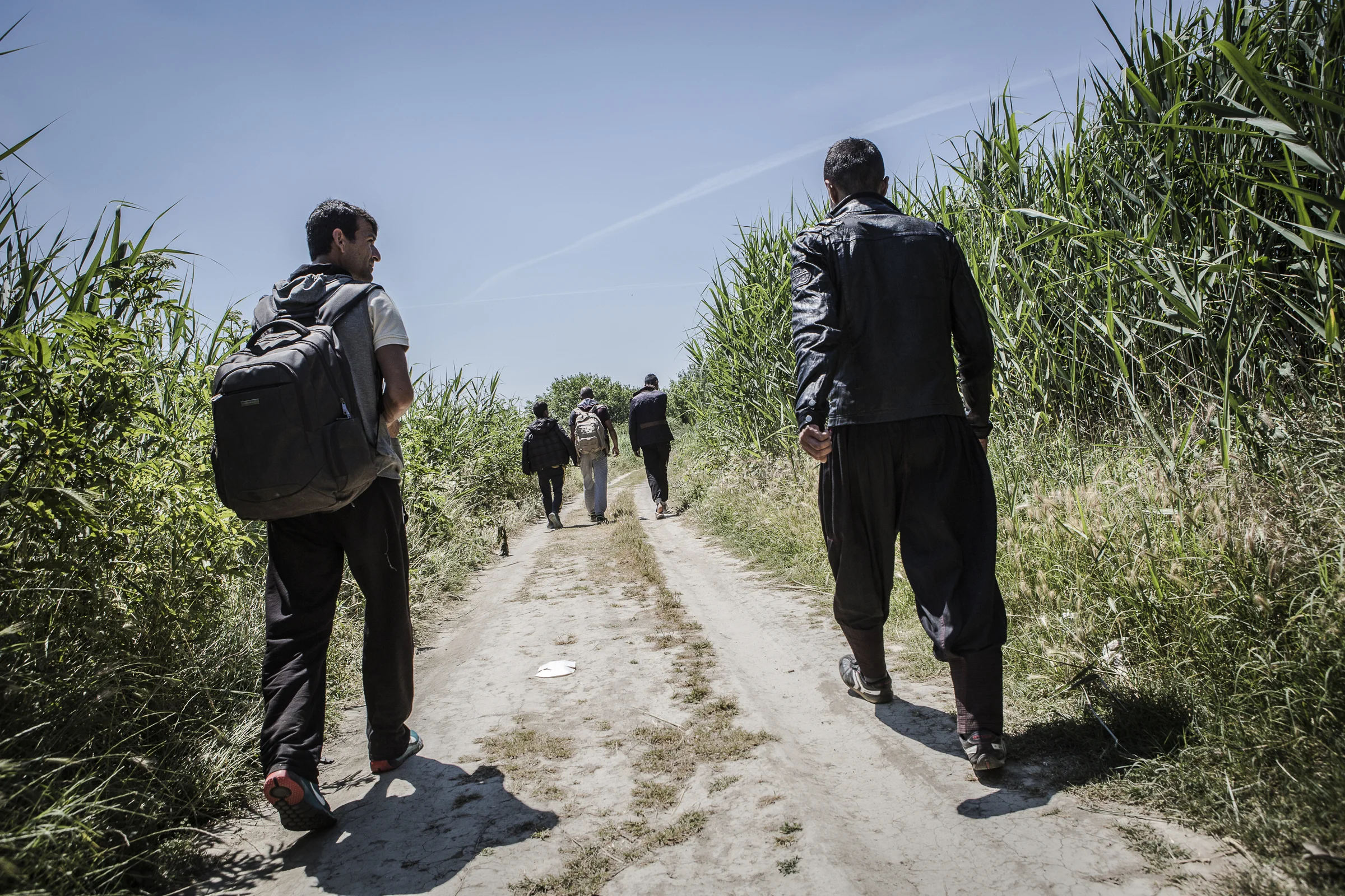 A group of migrants entering Vaksince where they are extremely vulnerable to kidnapping by criminal gangs.